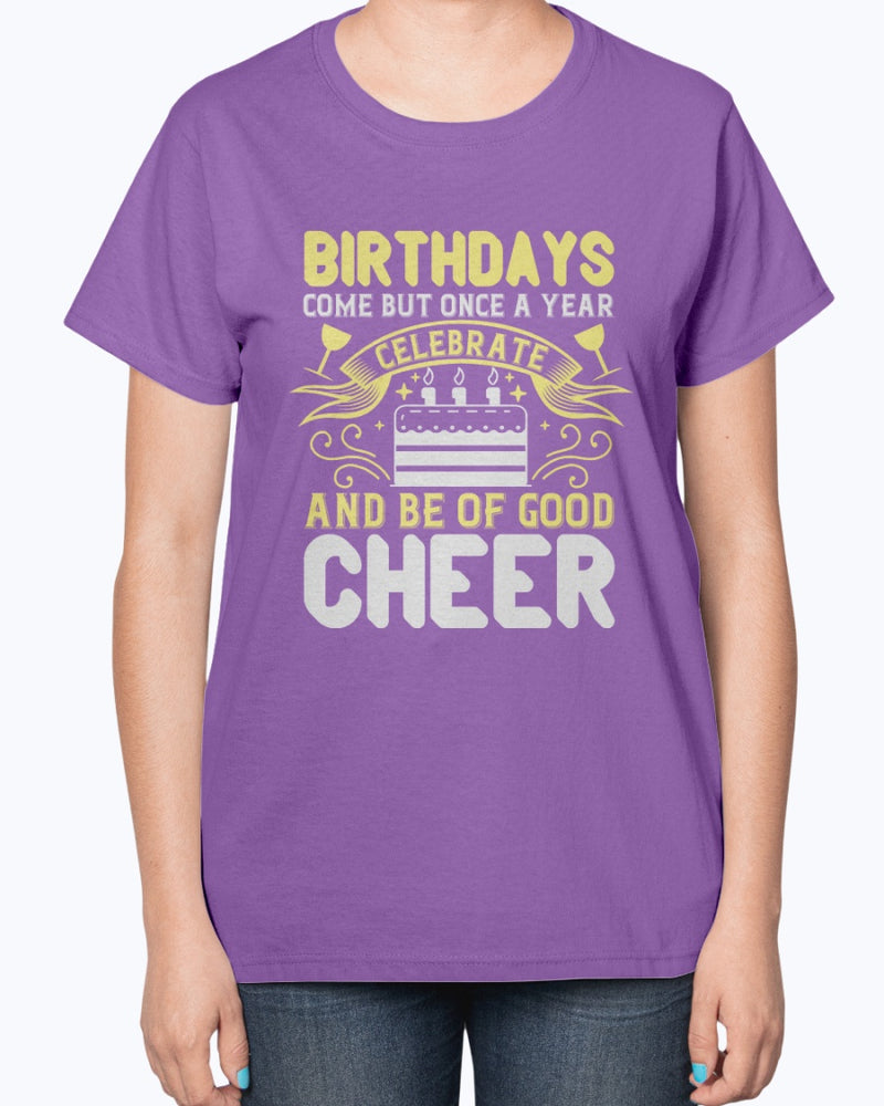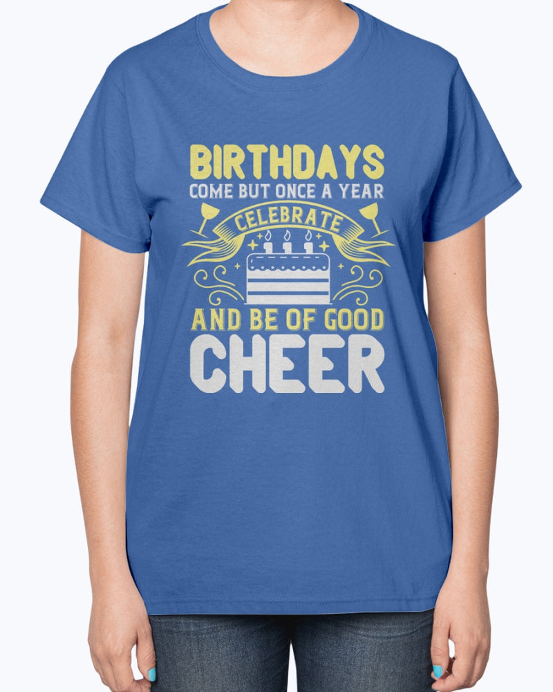 Birthdays come but once a year, celebrate and be of good cheer - Birthday - Ladies T-Shirt