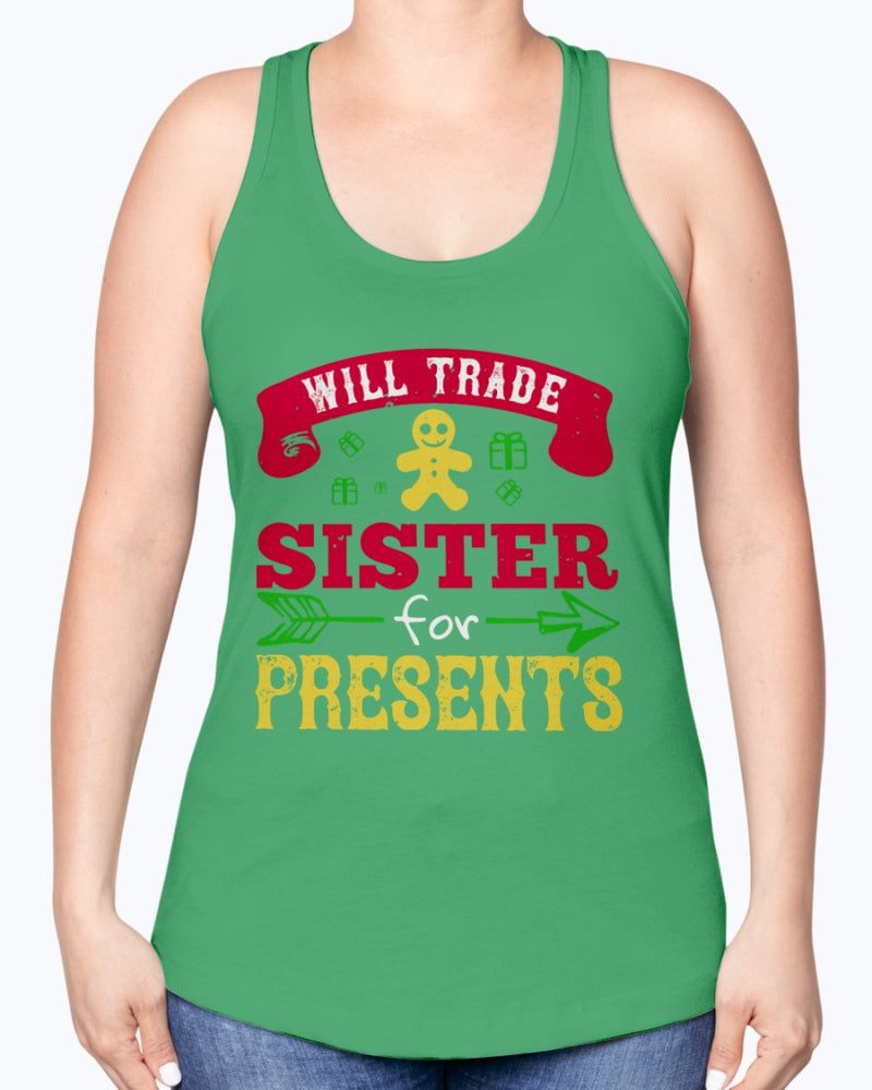 Will trade sister for presents - Christmas- Racerback Tank
