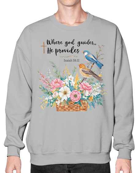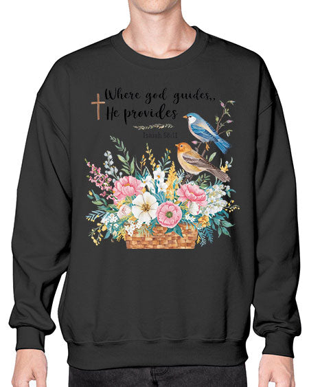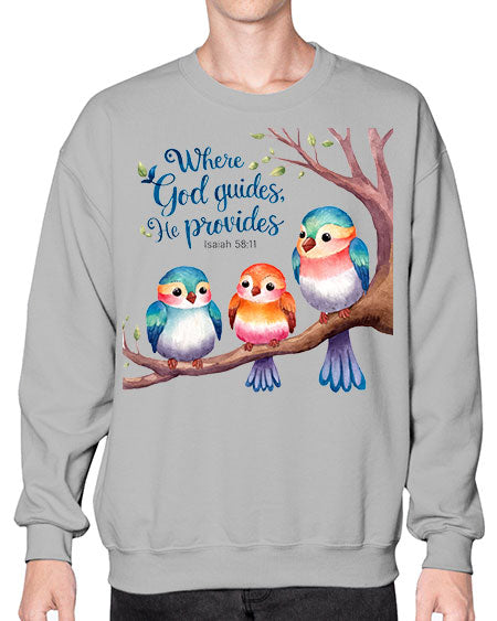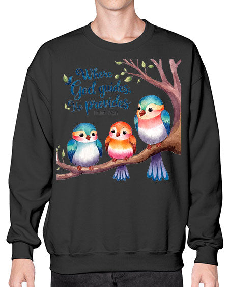 where god guides, he provides 77# - birds- Sweatshirt - Crew
