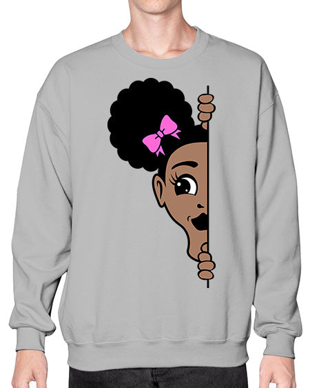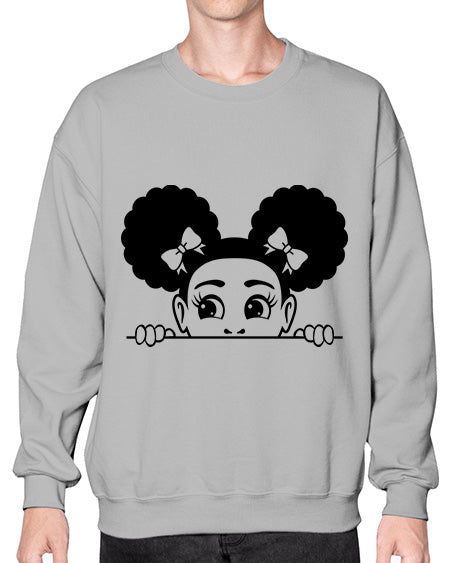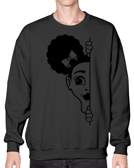 afro puffs girl peekaboo 80# - black girls or women- Sweatshirt - Crew