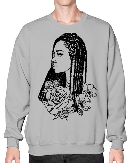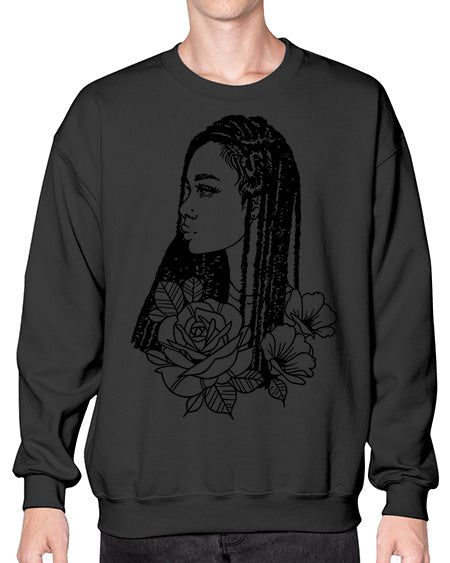 afro with flowers 70# - black girls or women- Sweatshirt - Crew