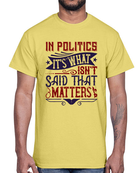 In politics its what isnt said that matters 657#- graphic- Cotton Tee