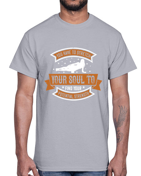 you have to stretch your soul to find your potential strength 654#- yoga- Cotton Tee