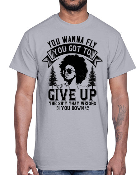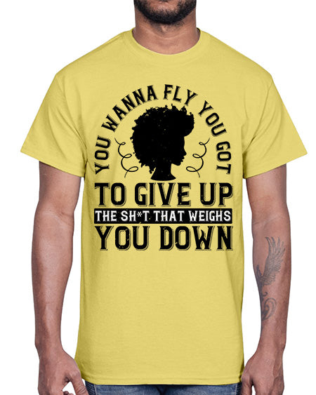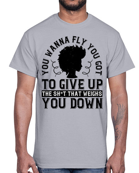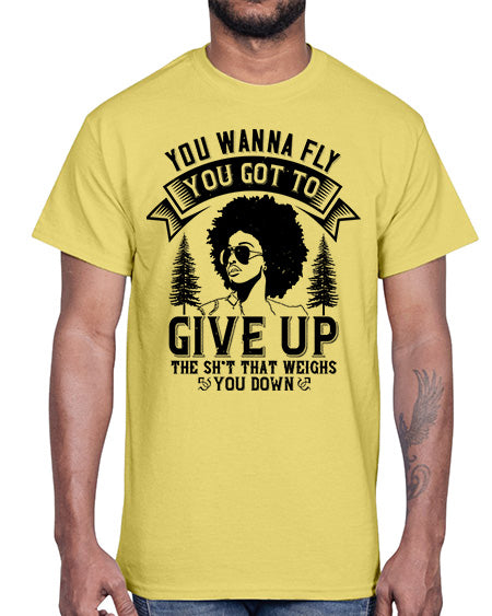 You wanna fly you got to give up the sht that weighs you down Style 45#- black afro- Cotton Tee