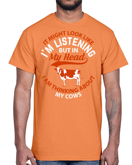 it might look like i’m listening but in my head i am thinking about my cows Style 2#- cow- Cotton Tee