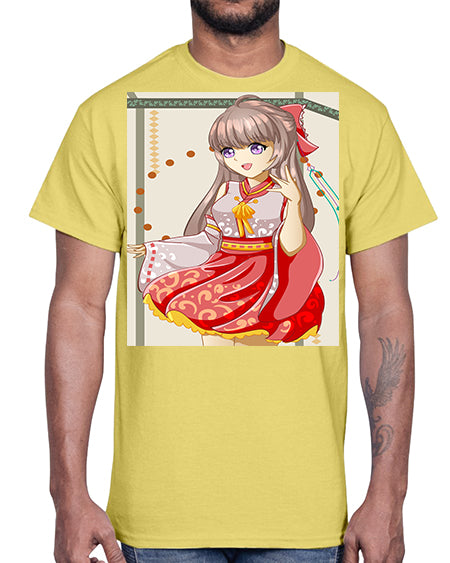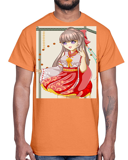 A beautiful and happy girl with kimono 104#- anime- Cotton Tee