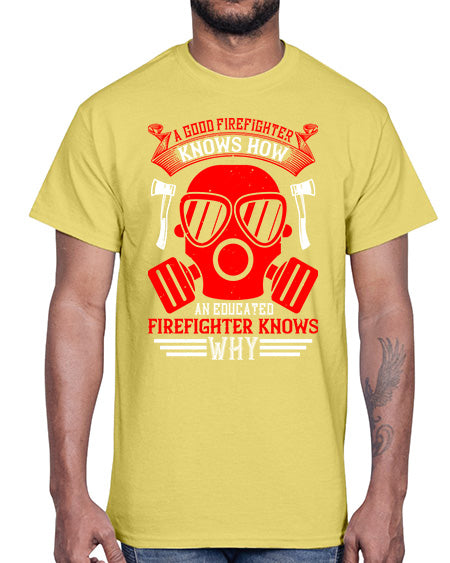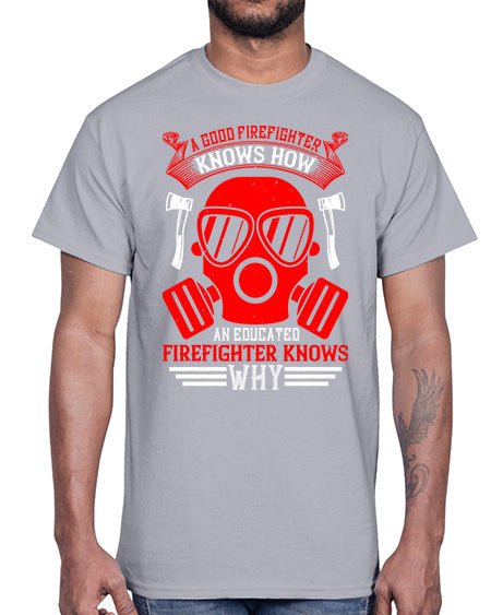 A good firefighter knows how an educated firefighter knows why Style 555#- fire fighter- Cotton Tee