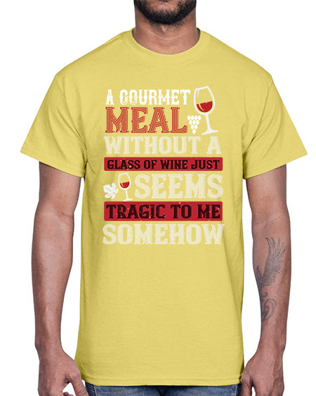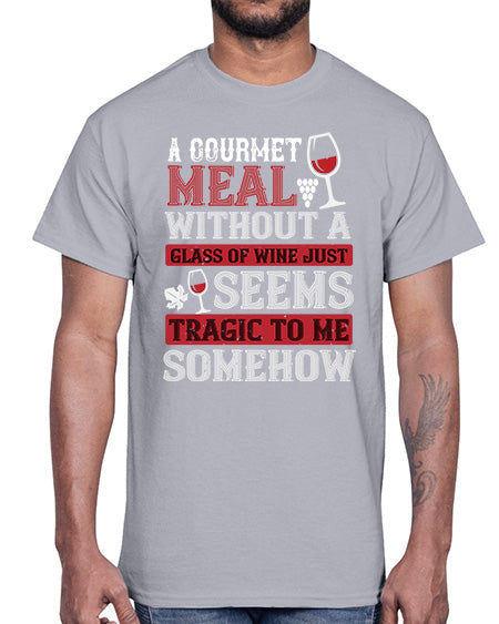 a gourmet meal without a glass of wine just seems tragic to me 528#- wine- Cotton Tee