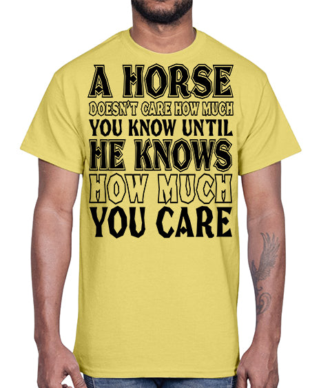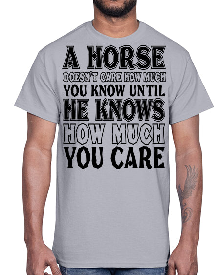 a horse doesnt care how much you know until- horse- Cotton Tee