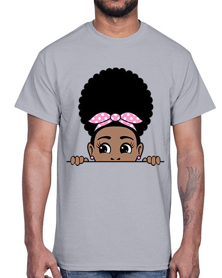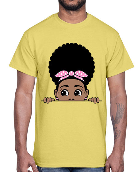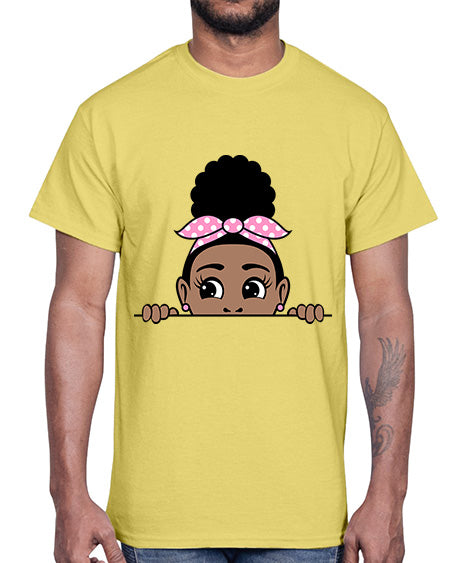 afro puff bandana girl peekaboo 85#- black girls or women- Cotton Tee