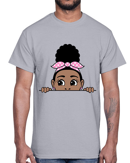 afro puff bandana girl peekaboo 86#- black girls or women- Cotton Tee