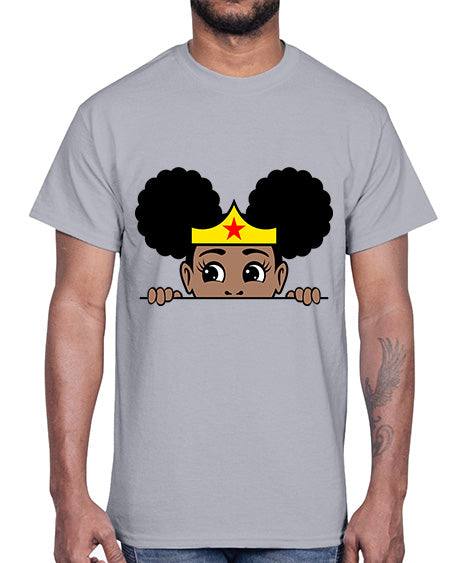 afro puff wonder woman girl peekaboo 84#- black girls or women- Cotton Tee