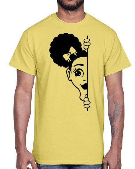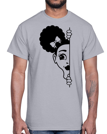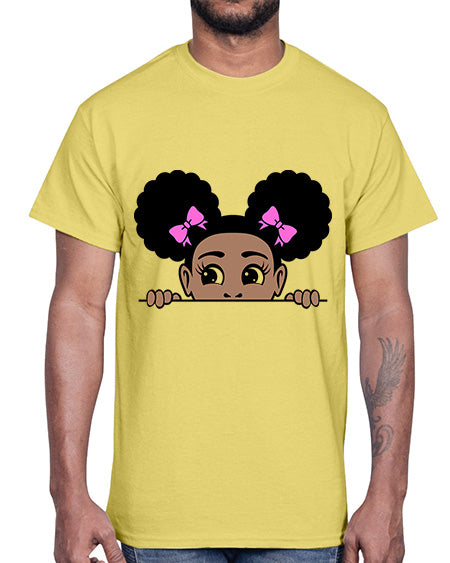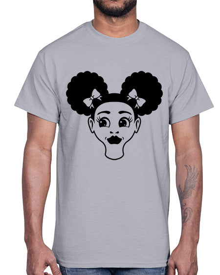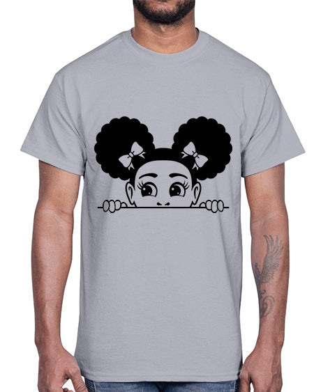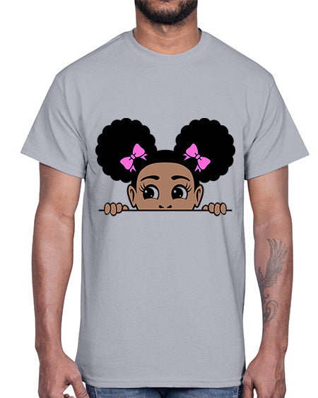 afro puffs girl peekaboo 80#- black girls or women- Cotton Tee