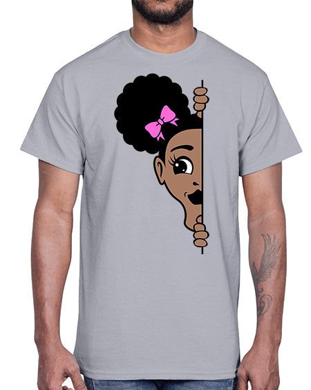 afro puffs girl peekaboo 83#- black girls or women- Cotton Tee