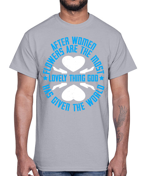 After women flowers are the most lovely thing God has given the world Style 79#- womens day- Cotton Tee