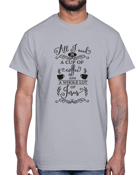 all i need is a cup of coffee and a whole lot of jesus 538#- coffee- Cotton Tee