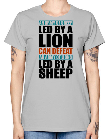 an army of sheep led by a lion - lion - Missy T-Shirt