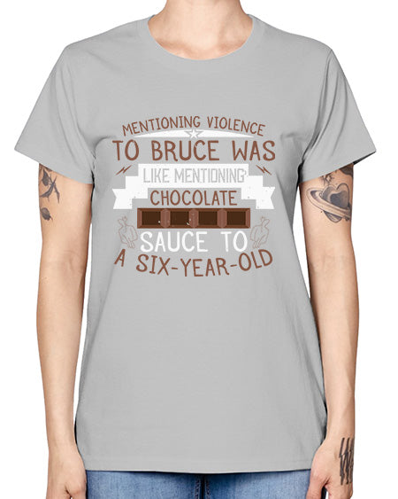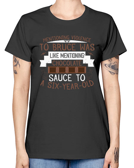 mentioning violence to bruce was like mentioning chocolate sauce to a sixyearold 335# - chocolate - Missy T-Shirt