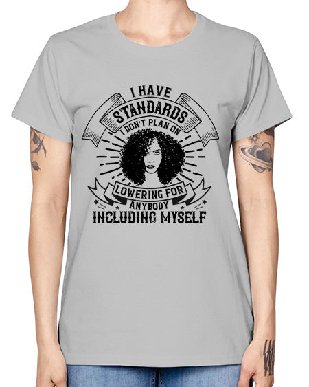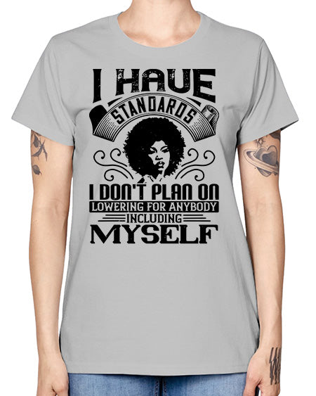 I have standards I dont plan on lowering for anybody … including myself Style 4# - black afro - Missy T-Shirt