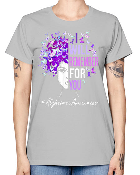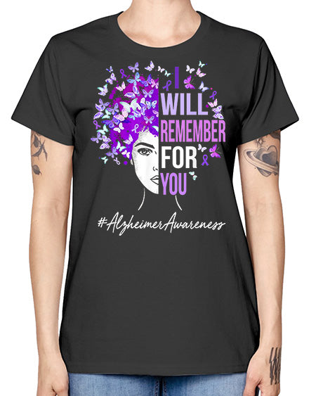 I Will Remember For You Alzheimer Awareness Womens Butterfly 180# - alzheimers - Missy T-Shirt