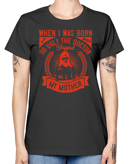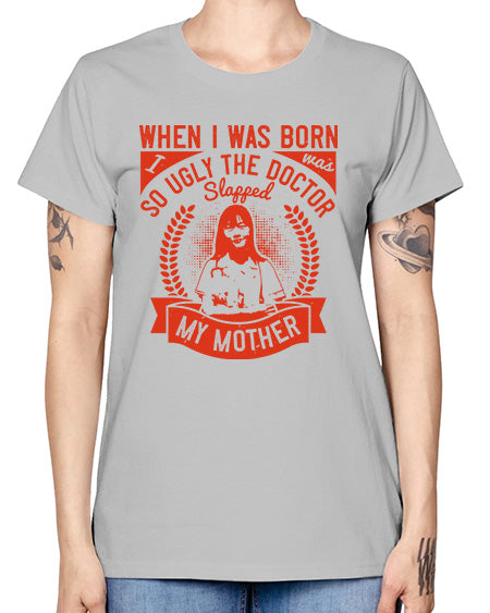 When I was born I was so ugly the doctor slapped my mother Style 472# - medical - Missy T-Shirt