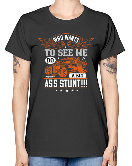 Who wants to see me do a BIGASS STUNT 76# - hot rod - Missy T-Shirt