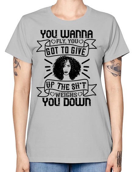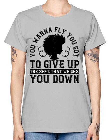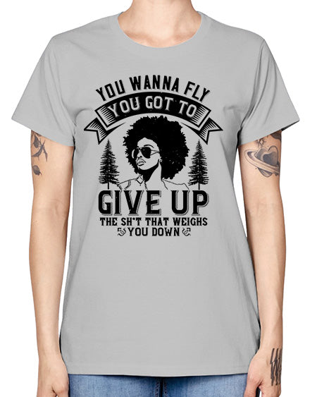 You wanna fly you got to give up the sht that weighs you down Style 45# - black afro - Missy T-Shirt