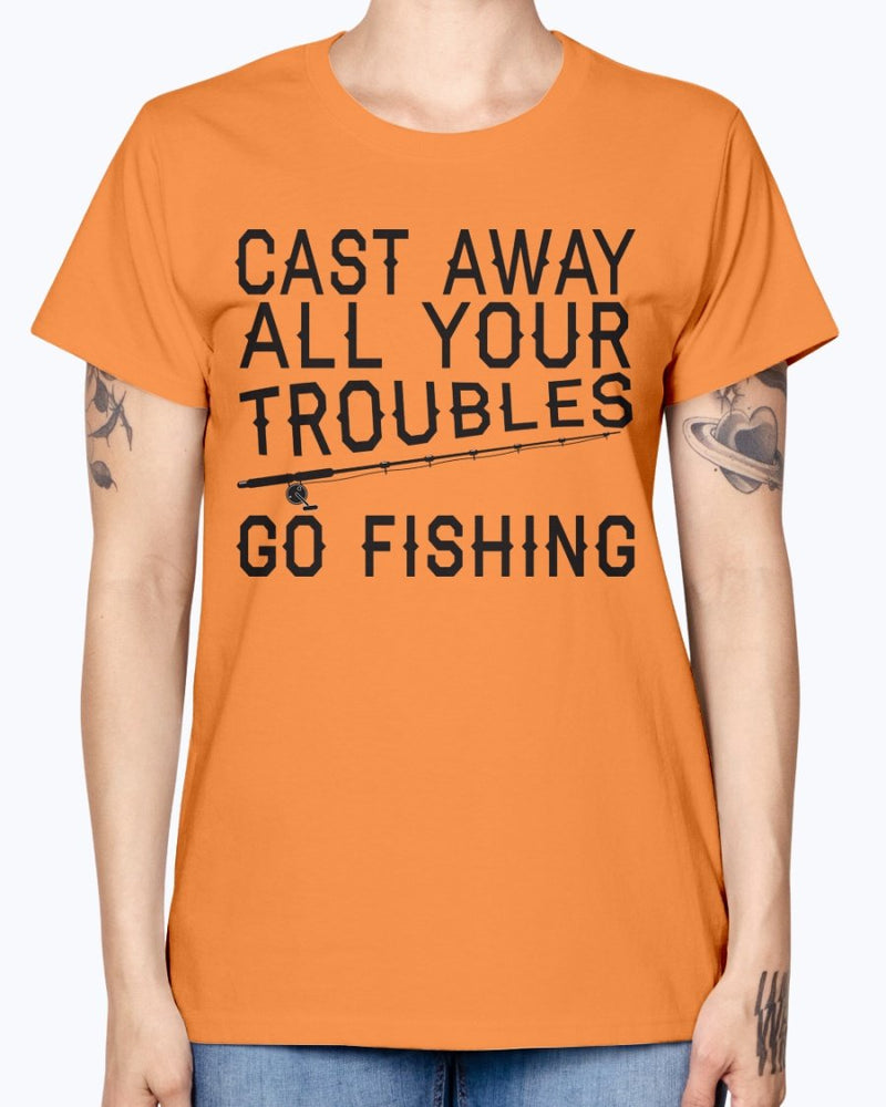 Cast all your troubles go fishing - Fishing- Missy T-Shirt