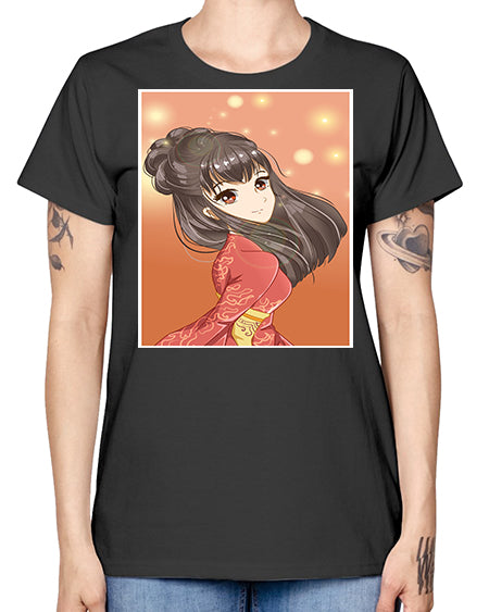 Cute and beautiful orange theme girl in summer 45# - anime - Missy T-Shirt