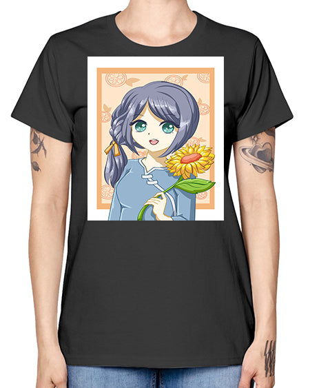 Cute and beautiful girl with sunflower in the summer 165# - anime - Missy T-Shirt