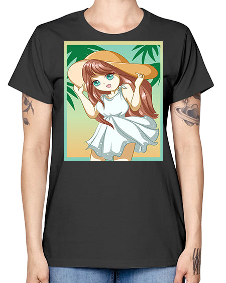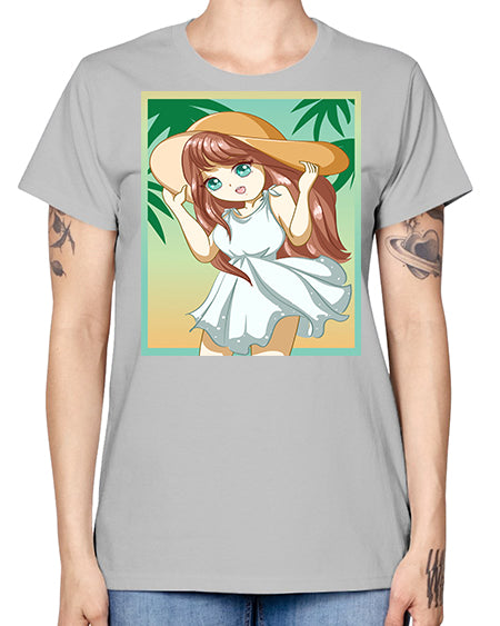Cute and beautiful girl with white dress in beach at summer 162# - anime - Missy T-Shirt
