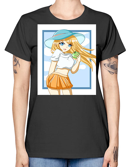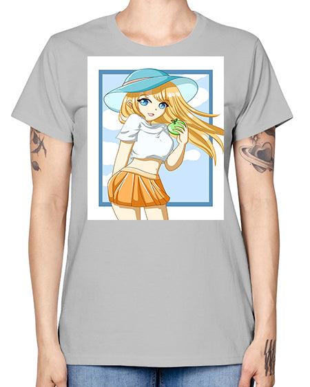 Cute and beautiful girl yellow hair with apple in the summer 158# - anime - Missy T-Shirt