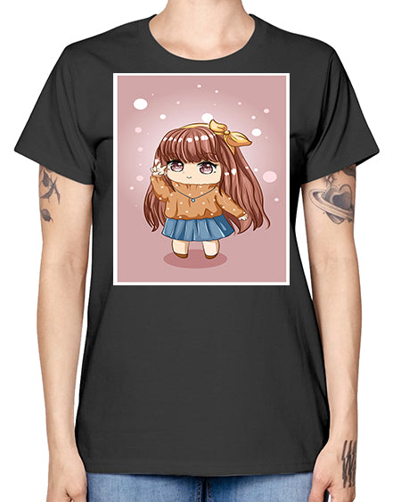 Cute and beautiful little girl long brown hair 149# - anime - Missy T-Shirt
