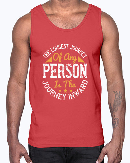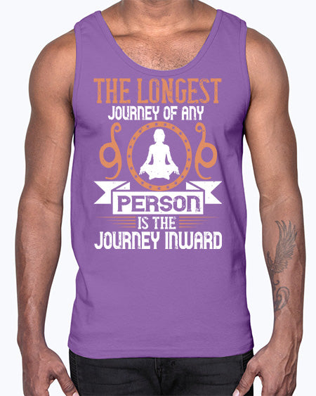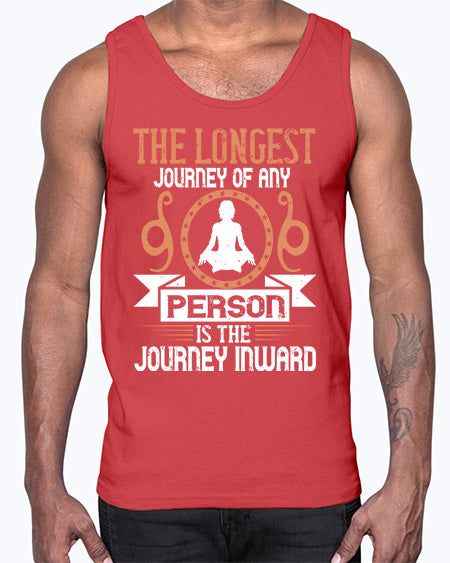 the longest journey of any person is the journey inward 551#- yoga- Cotton Tank