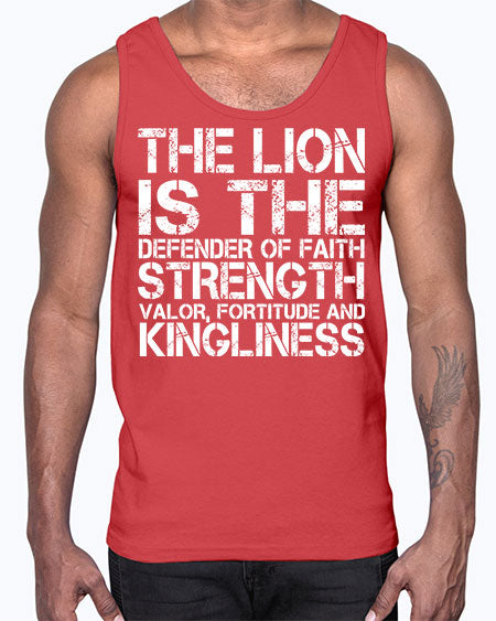 the lion is the defender of faith strength valor- lion- Cotton Tank