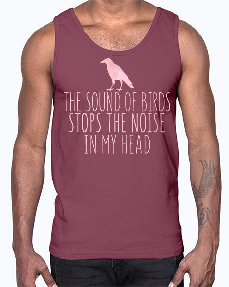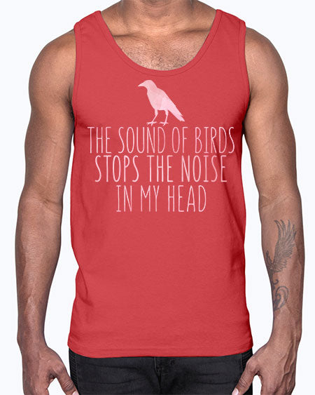 the sounds of birds stops the noise in my head 75#- birds- Cotton Tank