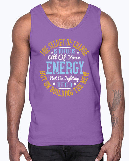 the secret of change is to focus all of your energy not on fighting the old but on building the new 561#- yoga- Cotton Tank