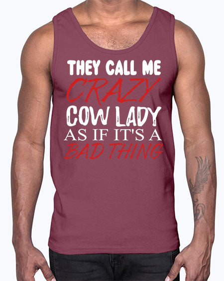 they call me crazy cow lady if its a bad thing- cow- Cotton Tank