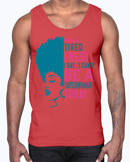 When Im tired I rest I say I cant be a superwoman today Style 11#- black afro- Cotton Tank