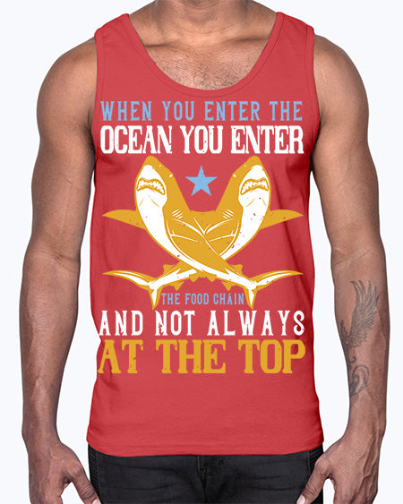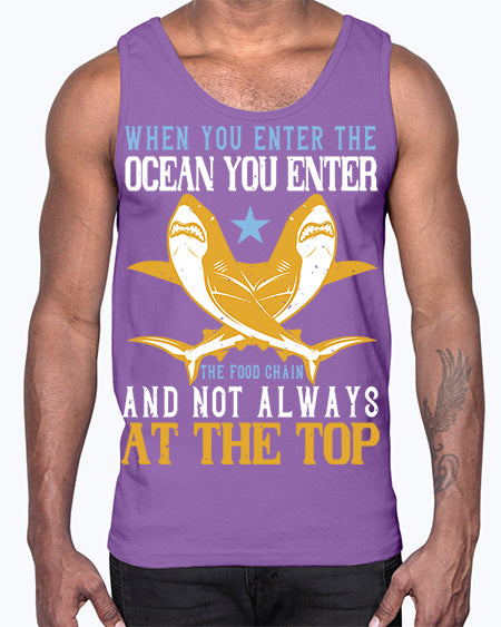 When you enter the ocean you enter the food chain and not always at the top Style 2#- shark-fish- Cotton Tank