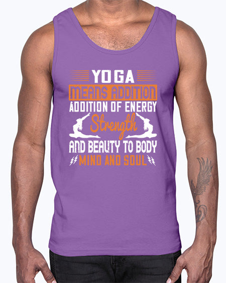 yoga means addition addition of energy strength and beauty to body mind and soul 630#- yoga- Cotton Tank