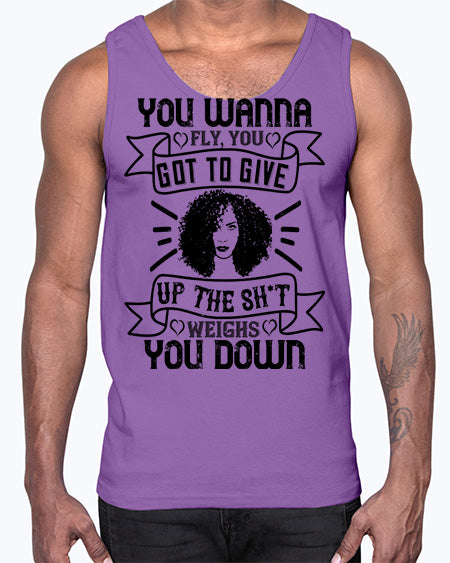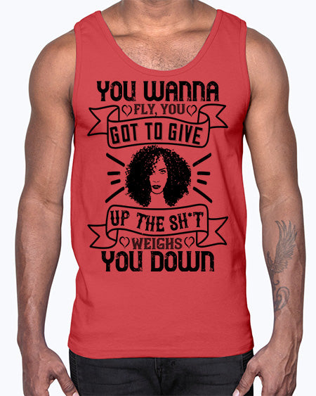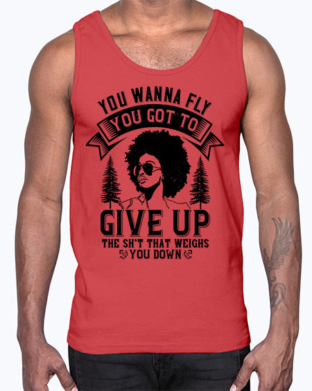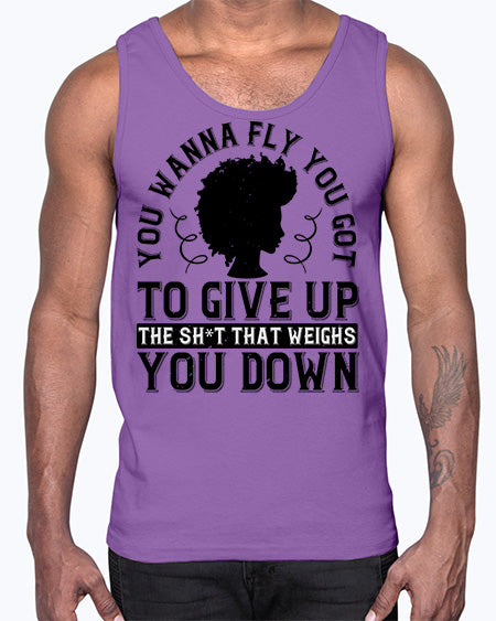 You wanna fly you got to give up the sht that weighs you down Style 45#- black afro- Cotton Tank