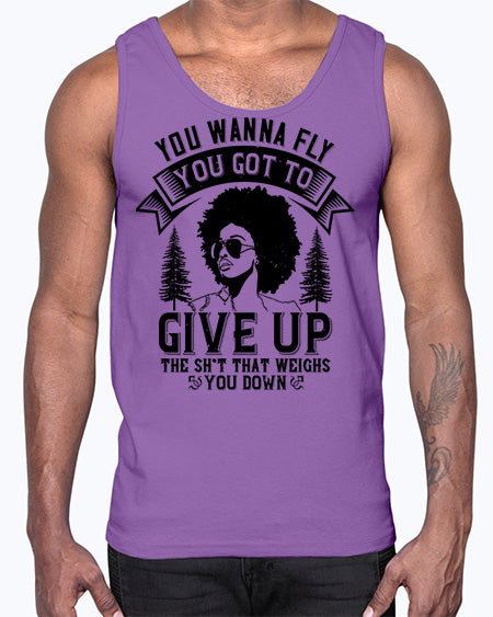 You wanna fly you got to give up the sht that weighs you down Style 47#- black afro- Cotton Tank