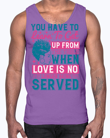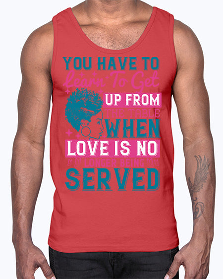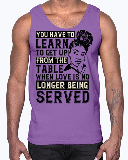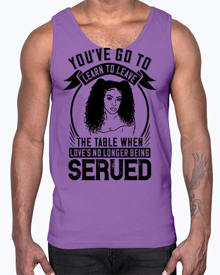Youve got to learn to leave the table when loves no longer being served Style 46#- black afro- Cotton Tank