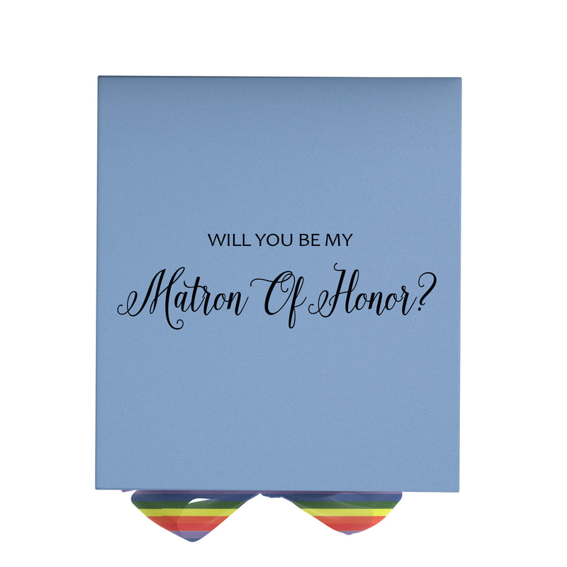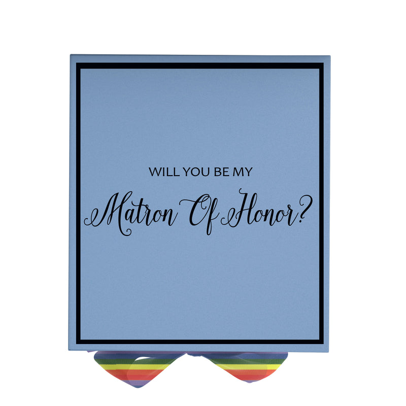 Will You Be My Matron of Honor? Proposal Box light blue - No Border - Rainbow Ribbon