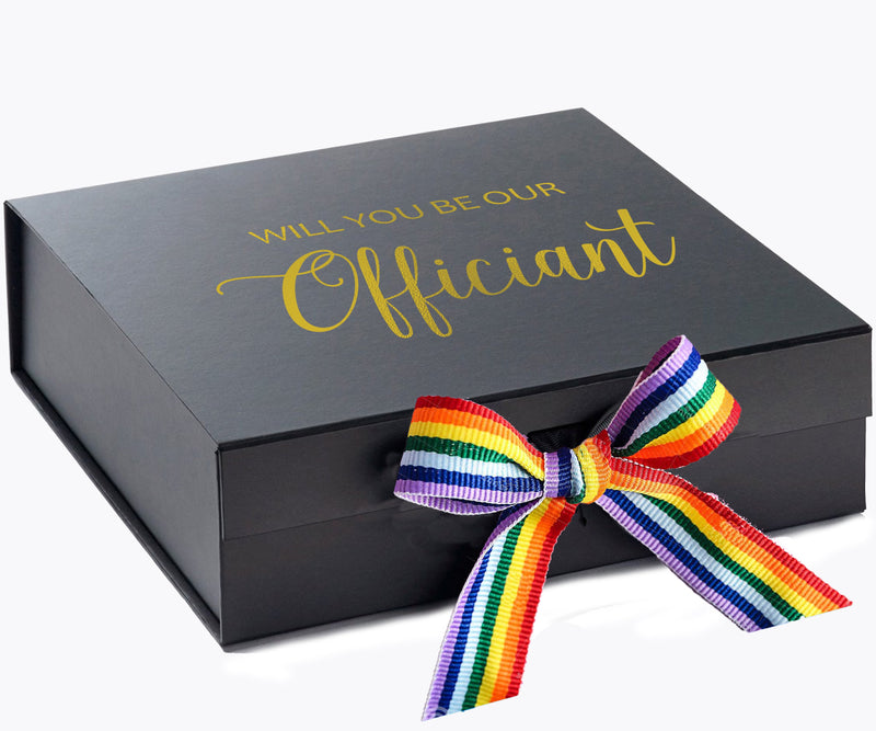 Will You Be our Officiant? Proposal Box black - No Border - Rainbow Ribbon