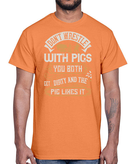 Don’t wrestle with pigs You both get dirty and the pig likes it Style 86#- pig- Cotton Tee
