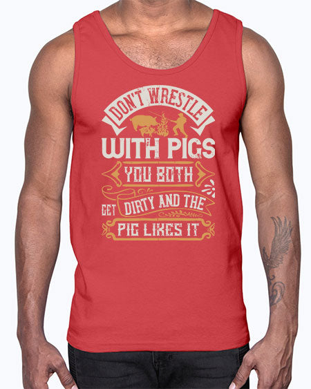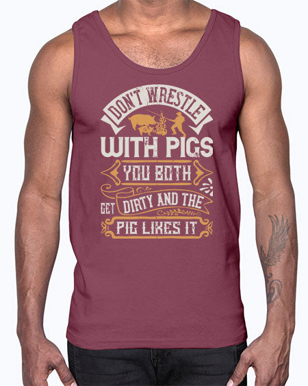 Don’t wrestle with pigs You both get dirty and the pig likes it Style 86#- pig- Cotton Tank