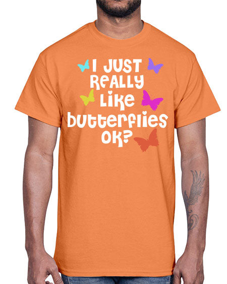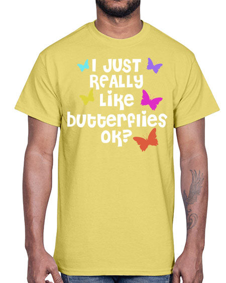 i just really like butterflies ok- butterfly- Cotton Tee