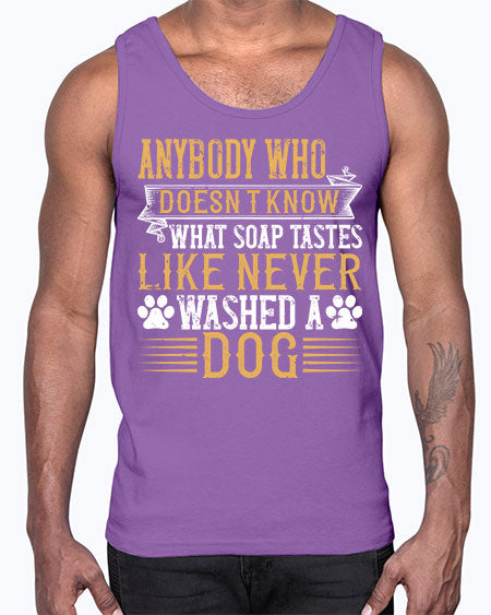Anybody who doesn’t know what soap tastes like never washed a dog Style 176#- dogs- Cotton Tank